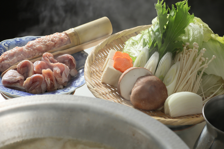 具材/鶏もも肉、鶏つくね、レタス、水菜、長ねぎ、しいたけ、えのき、しめじ、絹豆腐