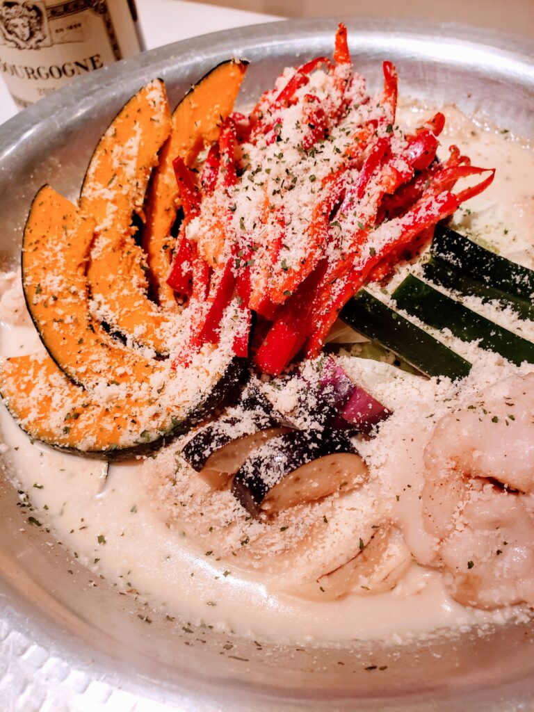 具材/黒毛和牛もつ、キャベツ、じゃがいも、なす、ズッキーニ、かぼちゃ、赤ピーマン